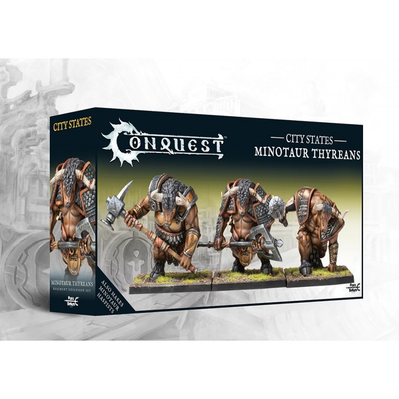 ● Dual Kit. Contains 3 Plastic Miniatures (Minotaur Thyreans/Haspists)