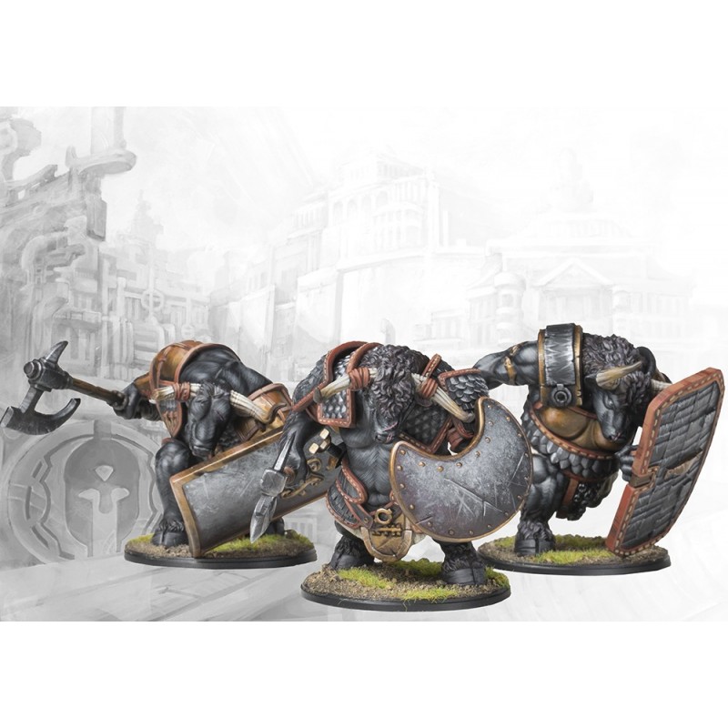 ● Dual Kit. Contains 3 Plastic Miniatures (Minotaur Thyreans/Haspists)