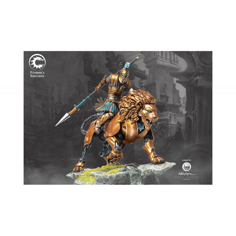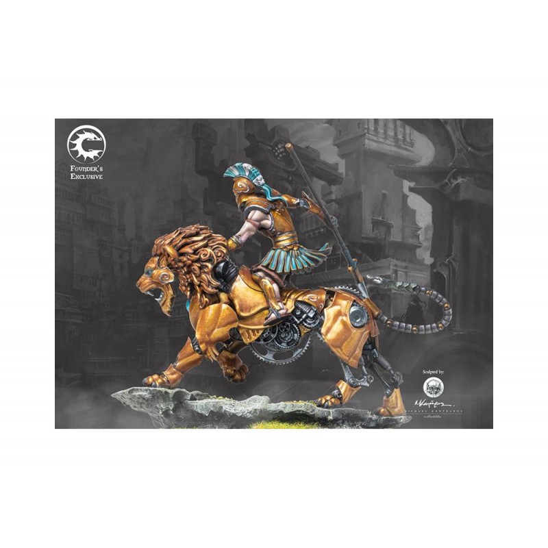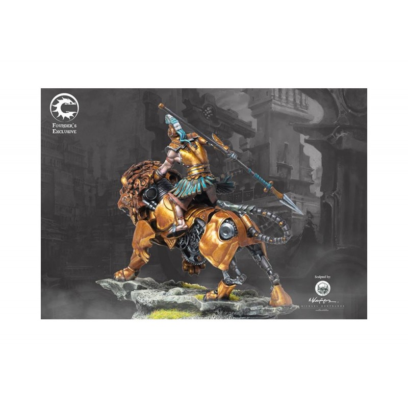 Leontarchos : Cœur de lion, ou âme de lion, sont quelques-uns des plus anciens compliments pour un leader courageux parmi toutes les cultures humaines, précédant même l'Ancienne Dominion. Il n'est donc pas surprenant que le titre de Leontarchos, Seigneur des Lions, soit la plus haute distinction qu'un État-Cité puisse accorder à ses dirigeants. La merveille mécanique qu'est le cheval mécanique alimenté par le phlogistique qui lui est présenté en reconnaissance de ses actes est presque une réflexion après coup, malgré le fait qu'il soit une merveille de l'ingéniosité et de l'artisanat humain. Ce modèle est une édition numérotée, Exclusive du Fondateur, limitée à 995 unités au total. Ce modèle en résine arrivera avec un Certificat d'Authenticité pour le modèle, y compris son numéro dans la série de production. Dans le jeu, cela jouera comme un Ipparchos. Comment l'Ipparchos joue : Un officier distingué, l'Ipparchos commande les forces de cavalerie des armées des États-Cités. Capable de déployer un contingent significatif de cavalerie de Compagnons sur les flancs et l'arrière de l'ennemi, l'Ipparchos apporte un élément crucial en mouvement rapide à toute formation d'infanterie. Sculpté par Michael Kontraros. AVERTISSEMENT : Ne convient pas aux enfants de moins de 36 mois. Petites pièces. Composants pointus essentiels.