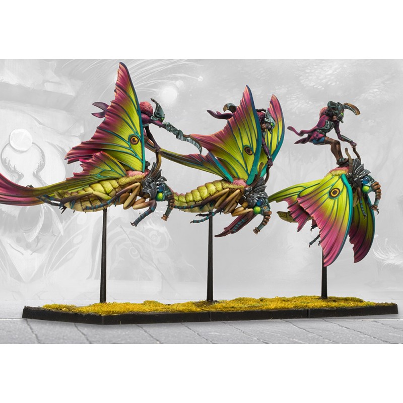 Les papillons Lunopeth ont été apprivoisés et liés il y a des millénaires par les Cours des Tisserands. De longues lignes de ces volants nocturnes ont été liés à vie aux tisserands depuis si longtemps qu'ils sont désormais une partie inséparable de leur société. Le terrain enchevêtré et la verticalité des Domaines des Tisserands se prêtent aux montures volantes. Leurs corps délicats ne se prêtent pas bien aux rigueurs du combat, mais les Tisserands ont compensé cela en armant leurs cavaliers avec des armes à distance. Les Cavaliers Skiathan vont au combat armés d'arbalètes habilement conçues qu'ils peuvent tirer en vol, harcelant l'ennemi sans s'exposer au danger.