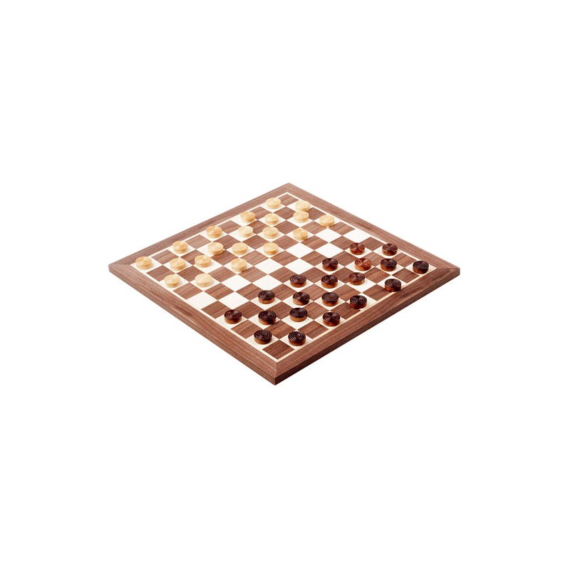 Se joue sur les cases claires. Chaque joueur dispose de 20 pions clairs ou foncés.