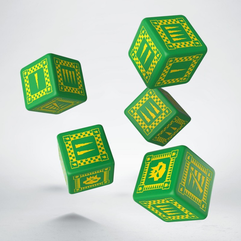 Un set de 5 dés thème Ork.