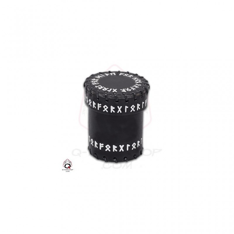 Gobelet en cuir pour dés avec des décorations au design Runic