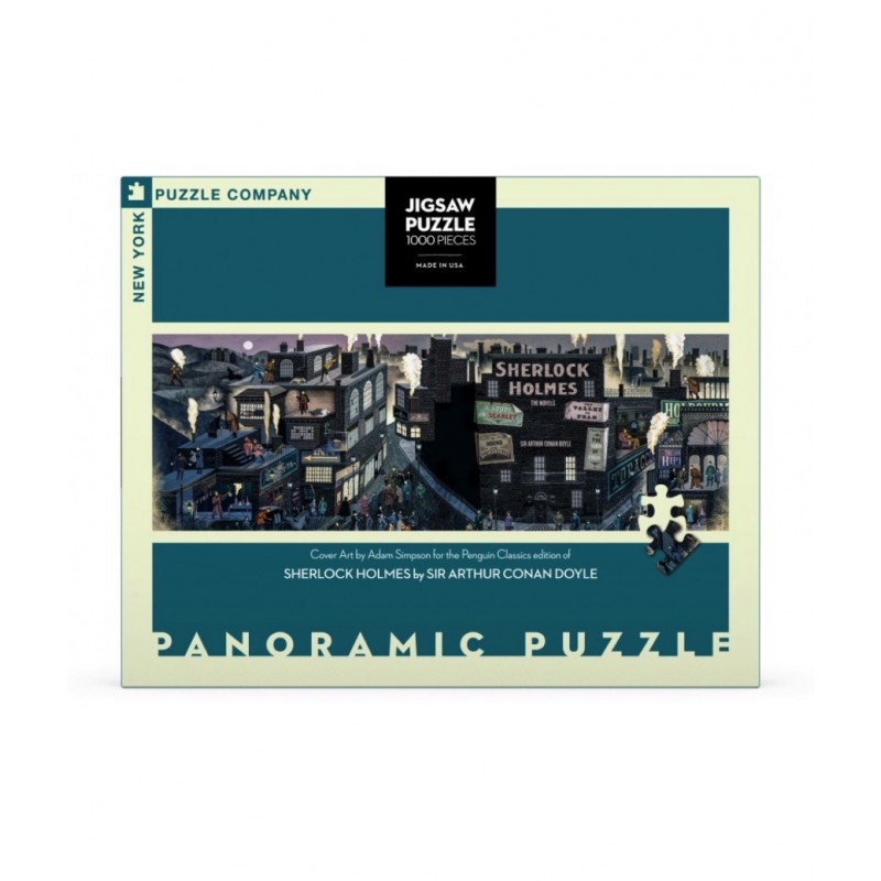 Sherlock Holmes et les romans les plus célèbres de Sir Arthur Conan Doyle remplissent la devanture du magasin alors que la nuit s'installe sur Londres.