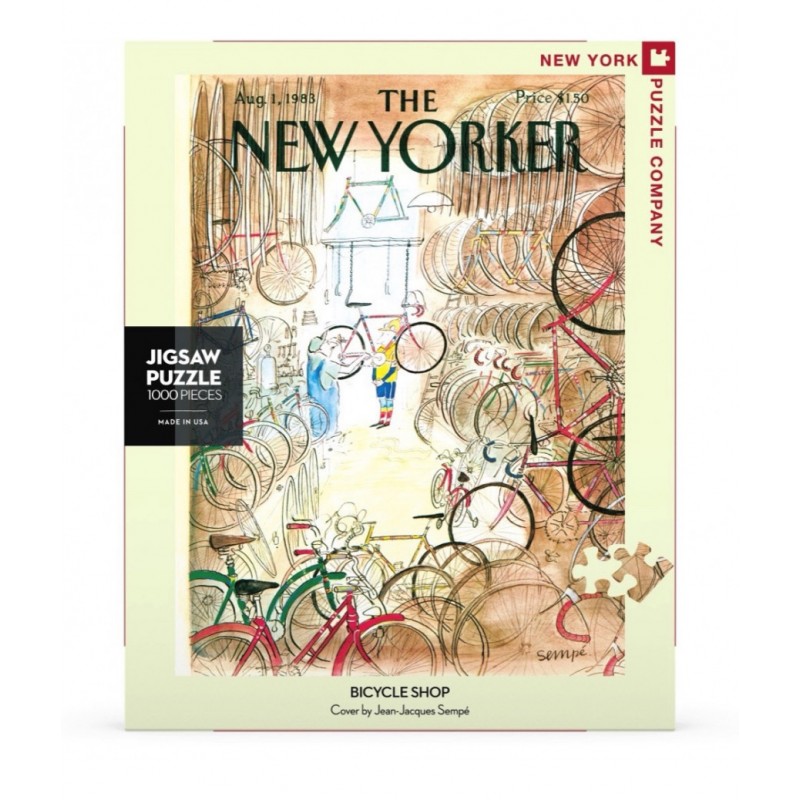 Un magasin de vélos rempli de vélos de toutes formes et tailles, suspendus aux murs, empilés dans les coins. Un ancien répare la chaîne pour cycliste prêt à rouler