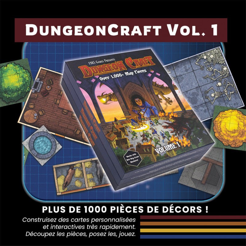Dungeon Craft est une boîte de possibilités infinies contenant plus de 1000 pièces de décors, de monstres et de PNJ réversibles pouvant être découpées et placées sur n'importe quelle carte de bataille avec une grille d'un pouce (1" / 2.5cm). Les pages sont en carton durable avec un revêtement en laminé pour les rendre résistantes à l'eau et effaçables à sec (type Velleda) ou à l'eau. De plus, tout est réversible pour plus de contenu et de contexte.