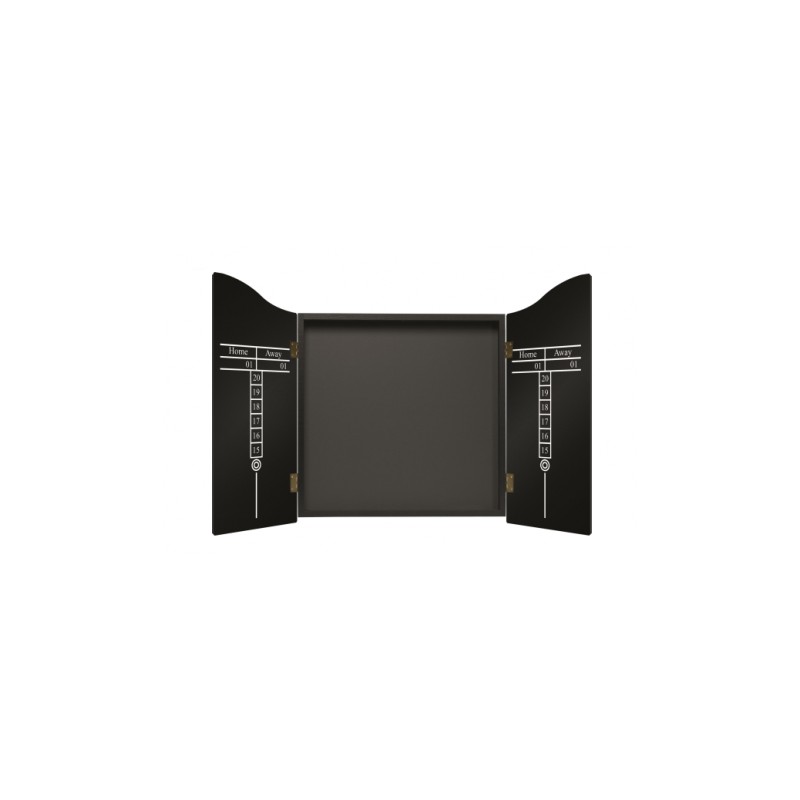 Cette armoire en bois couleur palissandre peut contenir une cible de fléchettes de taille standard.