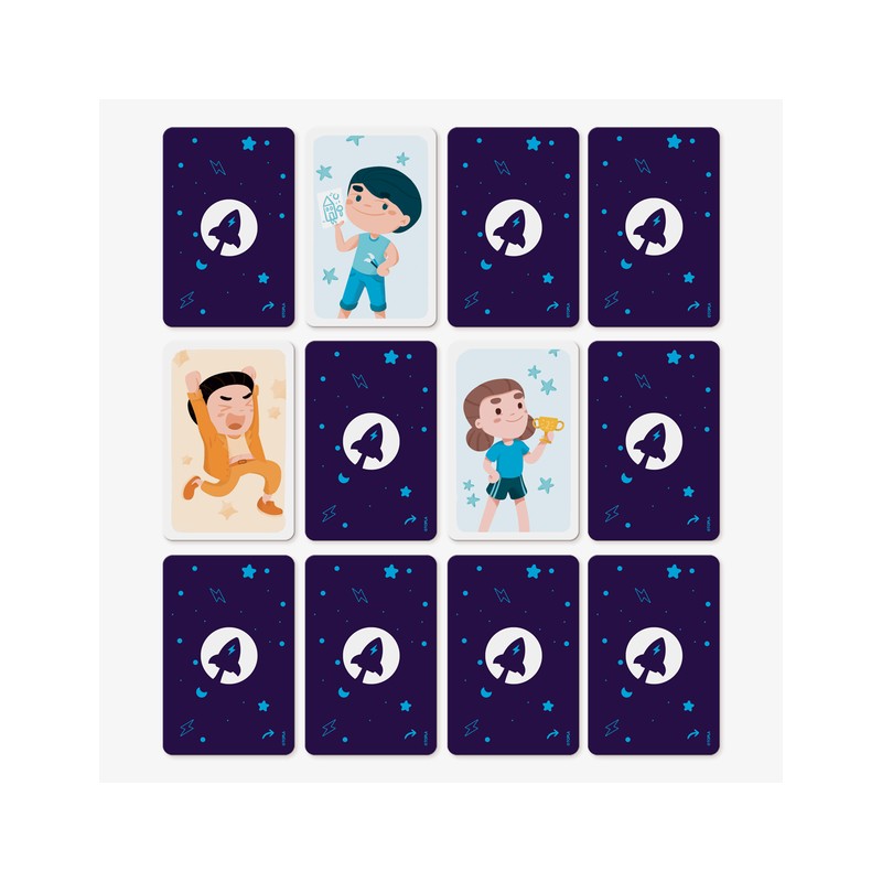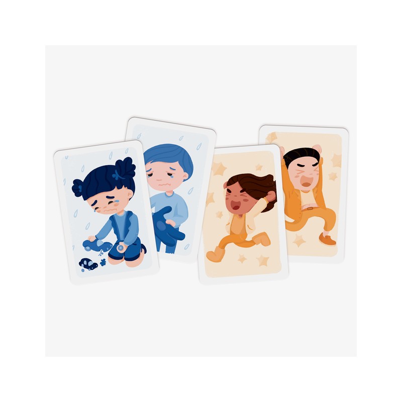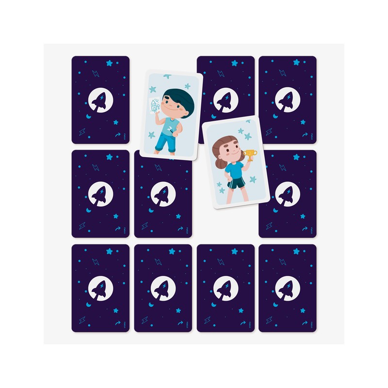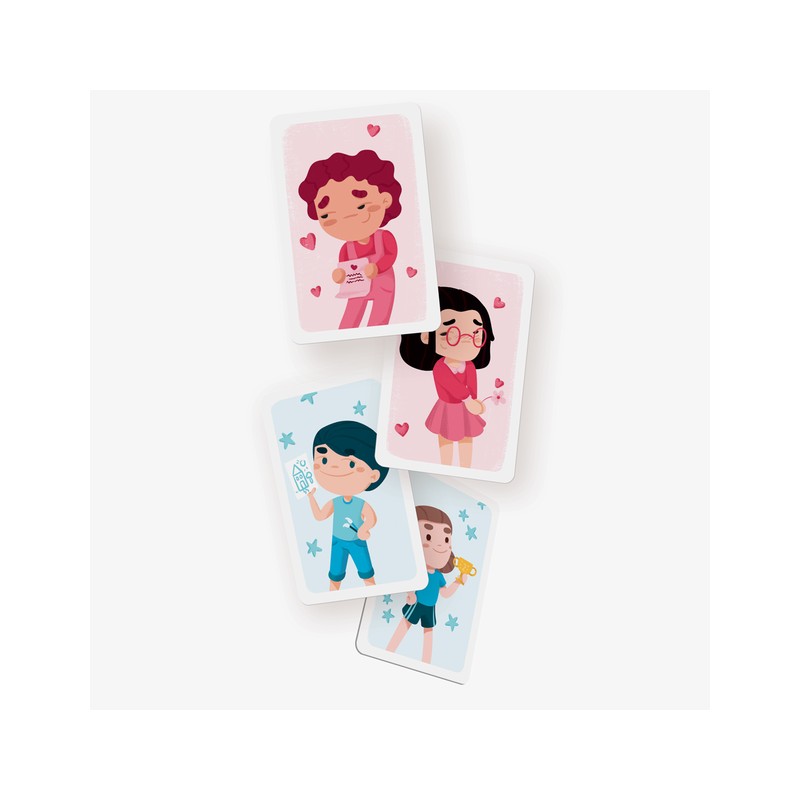 Est-ce que je peux être triste, heureux et heureuse, ambitieux et ambitieuse, puis même fort et forte ? Oui, tu peux ! Un jeu où garçons et filles peuvent ressentir toutes les émotions, y’a pas de raison ! Dans ce jeu de mémo, les enfants doivent retrouver les 25 paires d’émotions fille-garçon.