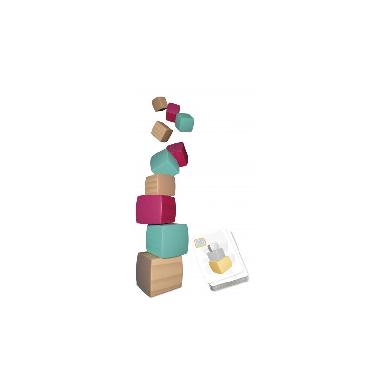 Empile les cubes les uns sur les autres sans faire tomber la pile ! Le premier à avoir joué toutes ses cartes ou à avoir placé le 9ième cube gagne la partie !