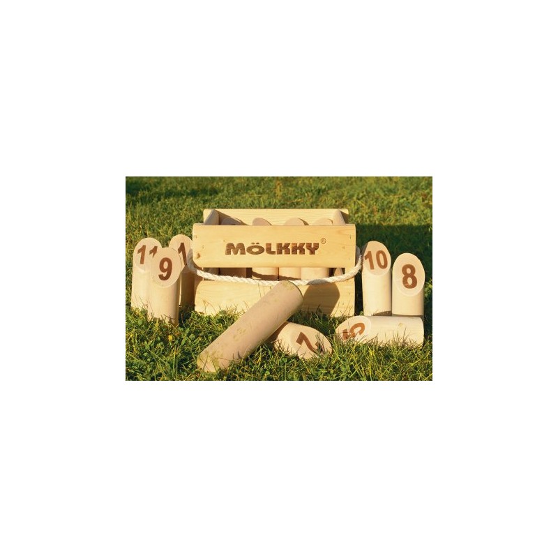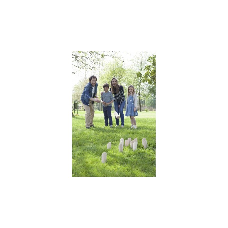 Mettez les quilles numérotées en place, puis lancez le Mölkky ! Le premier à atteindre exactement 50 points remporte la manche. Mais attention, si vous dépassez 50, votre score retombera à 25 !