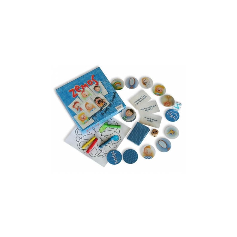 Zemos est un jeu de parcours coopératif, un voyage au pays des émotions nous invitant à nous raconter…à jouer en famille ou à utiliser comme outil de communication.
