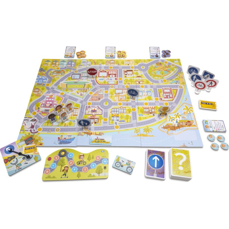 Un groupe d’amis rentre de l’école. Ils font la course pour savoir qui peut accomplir ses missions le plus rapidement et arriver le premier à la maison. Utilisez vos pas à bon escient et répondez correctement aux questions relatives à la circulation. Vous pouvez déplacer librement les panneaux de signalisation, ce qui rend chaque manche du jeu différente. Remportez le trophée de l’usager de la route le plus habile et arrivez le premier à destination !