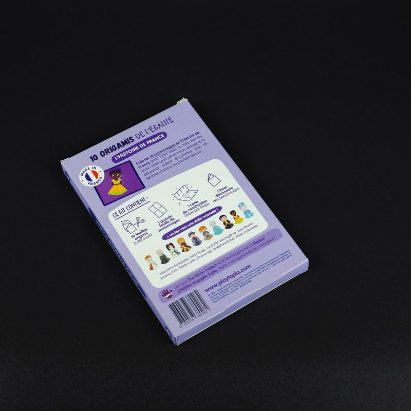 Chaque boite permet de fabriquer 10 figures historiques en origami : Marie Curie, Louis XIV, Simone Veil, Victor Hugo…